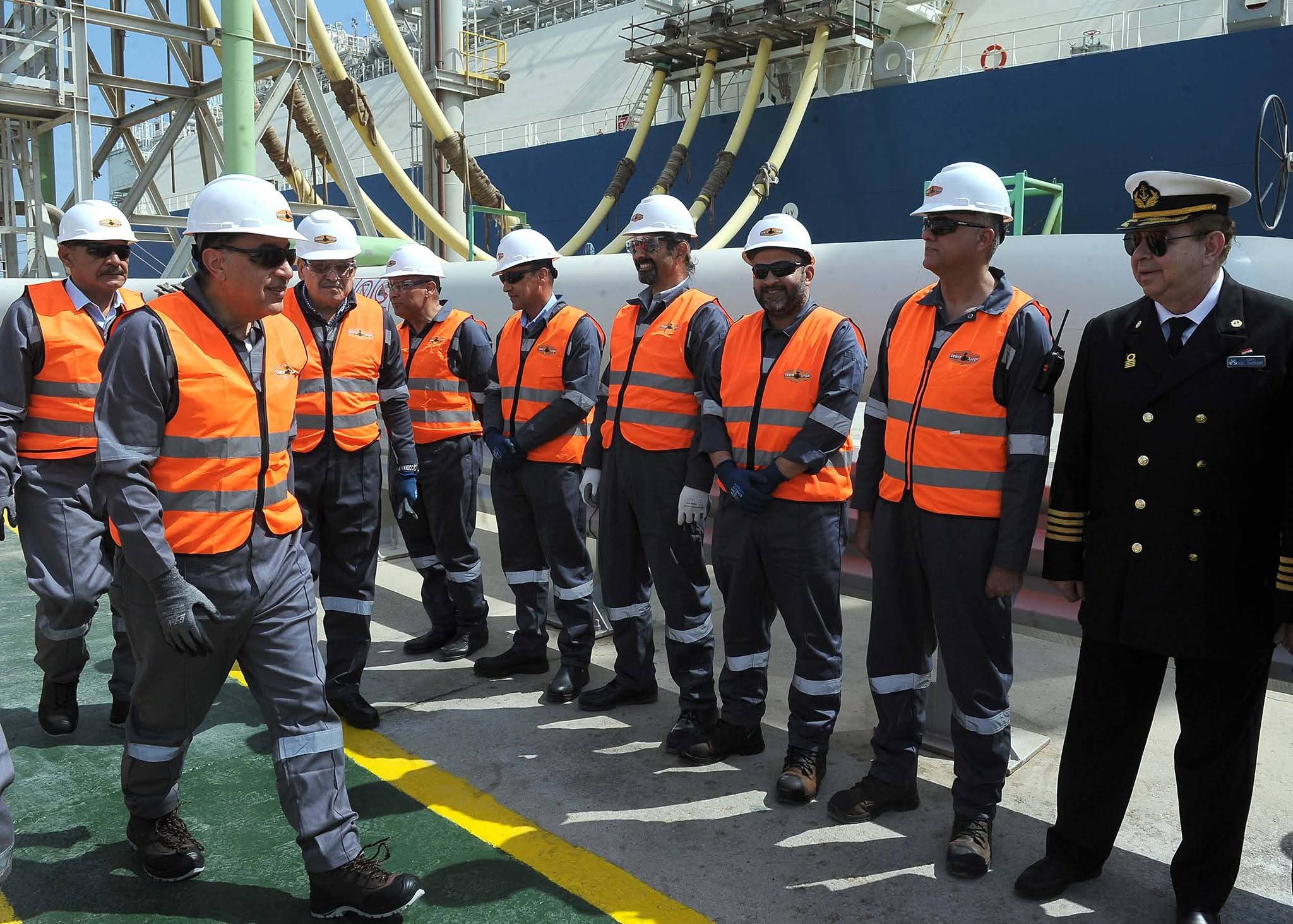 وخلال الجولة، صعد رئيس الوزراء إلى وحدة التغويز ووصل إلى نقطة المشاهدة المطلة على السفينة المحملة بشحنة الغاز المسال، لمتابعة إجراءات عملية التغويز عن قرب، في إطار متابعة الحكومة لكفاءة عمليات تداول المنتجات البترولية والغاز الطبيعي وضمان استمرار الإمدادات بالسوق المحلية.