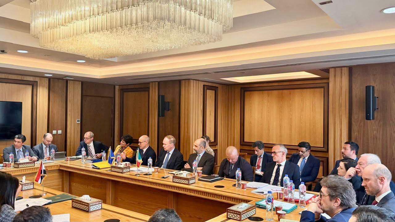 استقبل السفير وائل حامد، مساعد وزير الخارجية والتعاون الدولي للشئون الأوروبية، وفداً مشتركاً رفيع المستوى من إيطاليا والاتحاد الأوروبي، وذلك ضمن إطار الحوار المستمر لتعزيز التعاون المشترك في المجالات ذات الاهتمام المشترك.