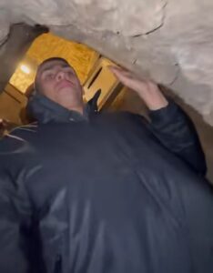 وختم البلوجر الفيديو بخروجه من السرداب ليصعد إلى المطعم في الطابق العلوي من السرداب أسفل المدينة.