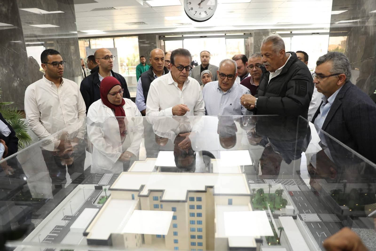 رافق الوزير خلال الجولة كبار المسؤولين في الوزارة والهيئة العامة للتأمين الصحي، للتأكد من سير الأعمال ومتابعة تنفيذ كل التفاصيل المتعلقة بالتطوير ورفع كفاءة المستشفى لخدمة المواطنين.
