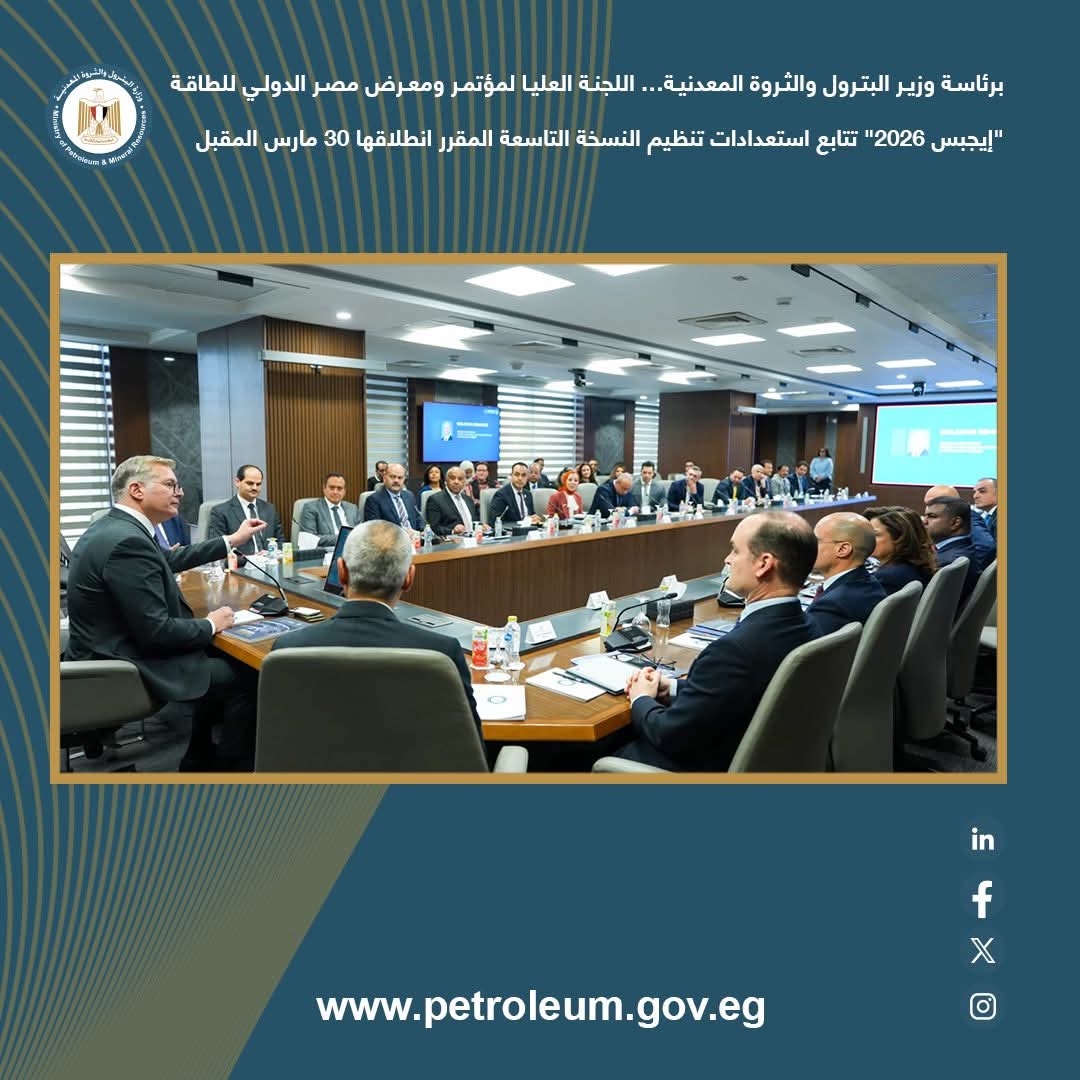برئاسة وزير البترول.. اللجنة العليا لـ«إيجبس 2026» تستعرض ترتيبات النسخة التاسعة المقرر انطلاقها 30 مارس