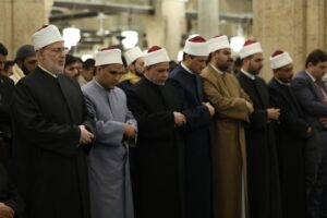 وتقدَّم صفوف المصلين الدكتور محمد الضويني، وكيل الأزهر الشريف، والدكتور سلامة داود، رئيس جامعة الأزهر، وفضيلة الشيخ حسن عراقي، وكيل لجنة مراجعة المصحف، إلى جانب عدد من علماء الأزهر وقياداته.